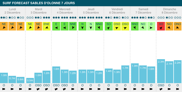 2,7m, 12s de période, dimanche. Le facteur "vent" sera tout de même à tenir en compte pour choisir le créneau idéal.